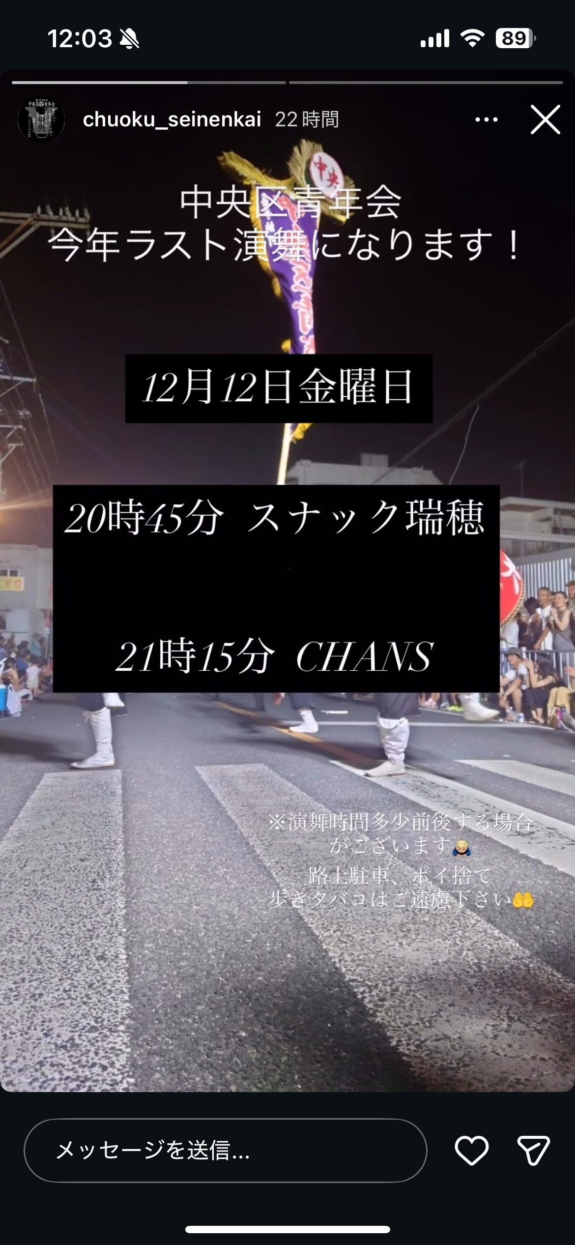 中央区青年会 地域演舞 - 2025年12月12日 スナック瑞穂 | エイサーマップ 2026