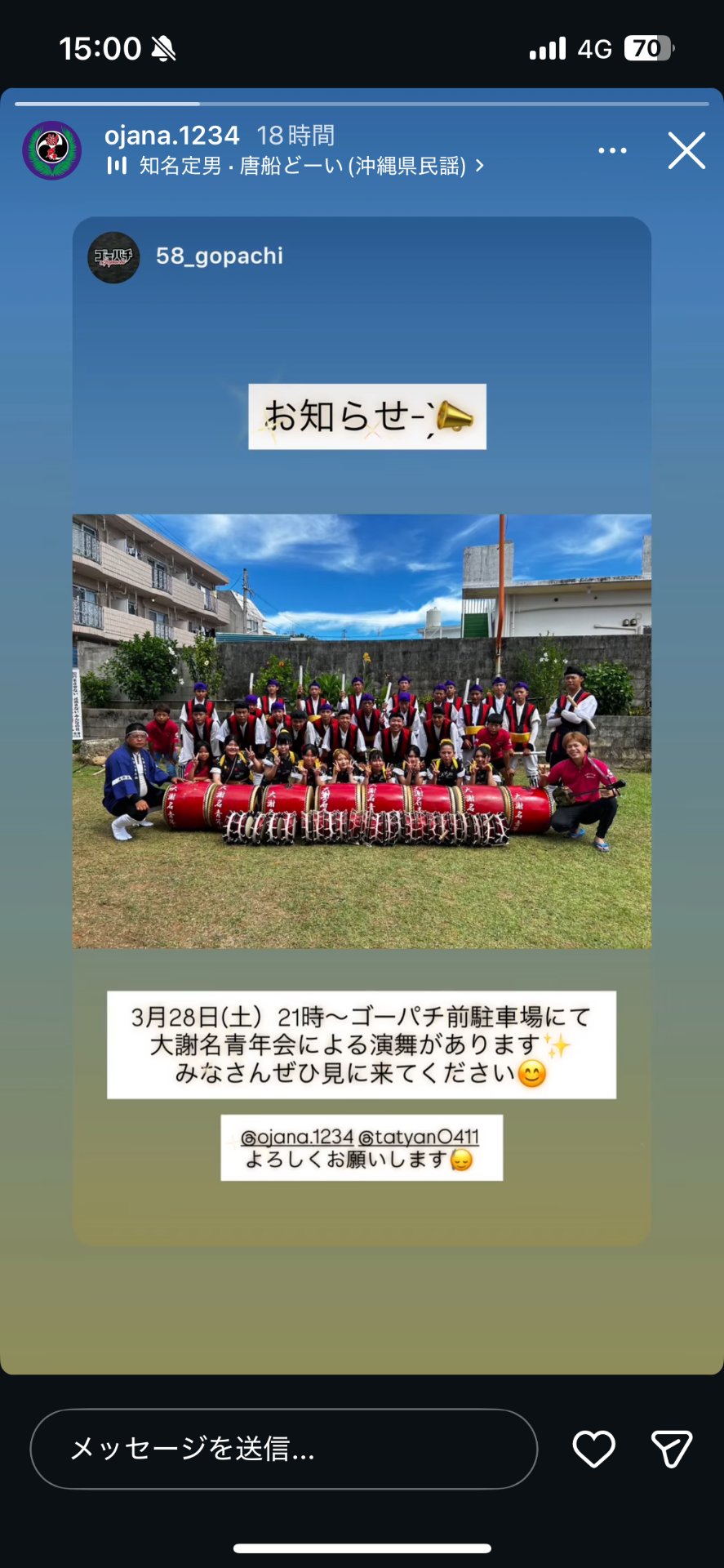 ストーリーズは24時間で削除されるため、現在は閲覧できない可能性があります。