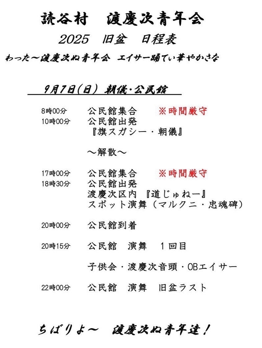 渡慶次青年会 道ジュネー - 2025年9月7日 画像参照 | エイサーマップ 2026